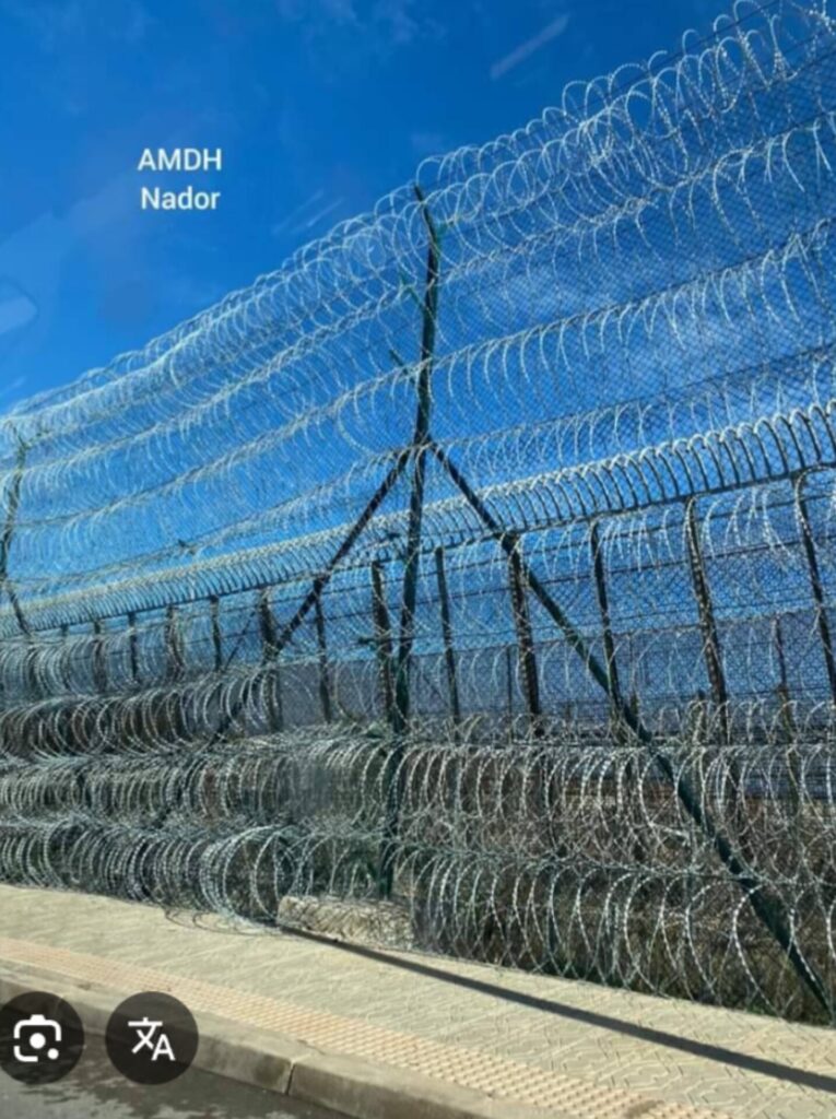 The seven-meter-tall fences have three parts: one on the Spanish side, one international and one Moroccan. Each is topped with razor-sharp barbed wire, as well as a five-meter pit used as an obstacle and extensive surveillance by authorities.​​​​ The physical border enclosing Melilla radiates violence and danger, in order to thwart breakthroughs or rather: jumps into the Spanish territory. Hundreds of “Melilla massacres” have taken place, such as the one in which at least 40 people were killed while attempting to cross the border into Melilla on June 24, 2022. AMDH Nador rightfully puts the violent incident into a wider context, stating: