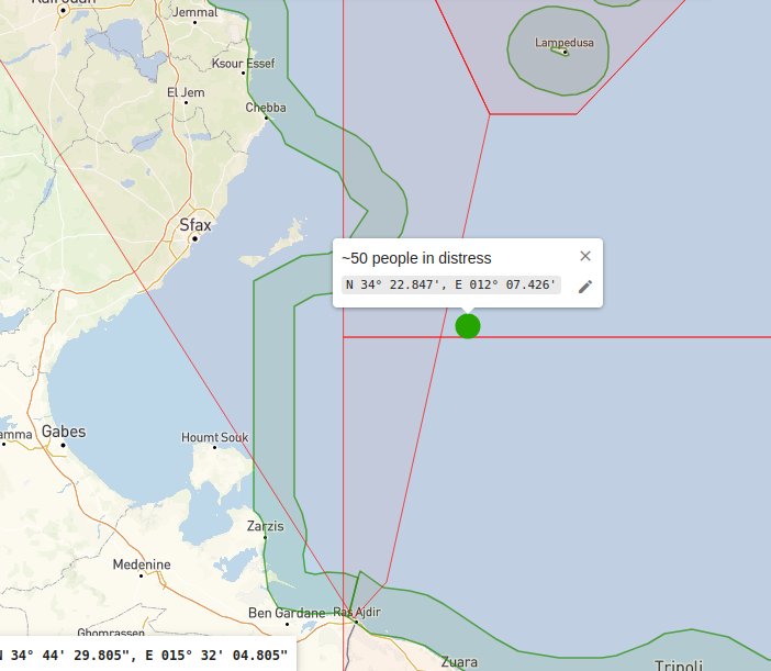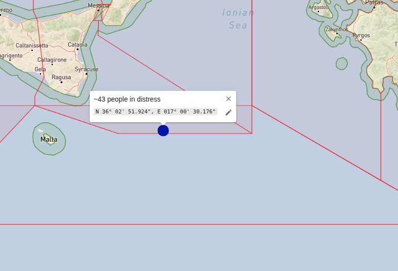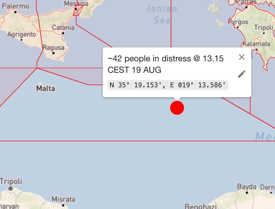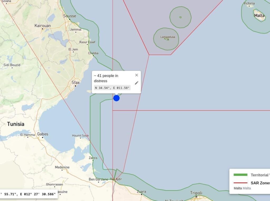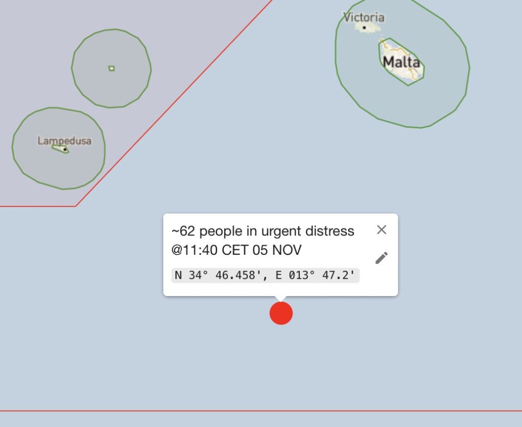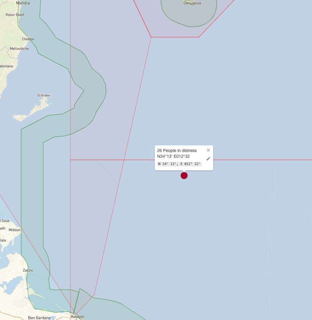 Position of the boat in distress in the Maltese SAR zone. Source: Alarm Phone