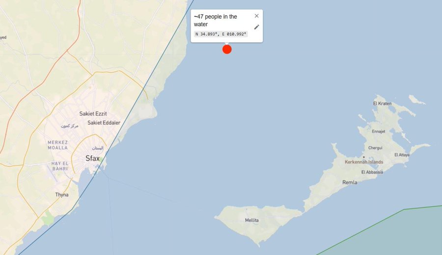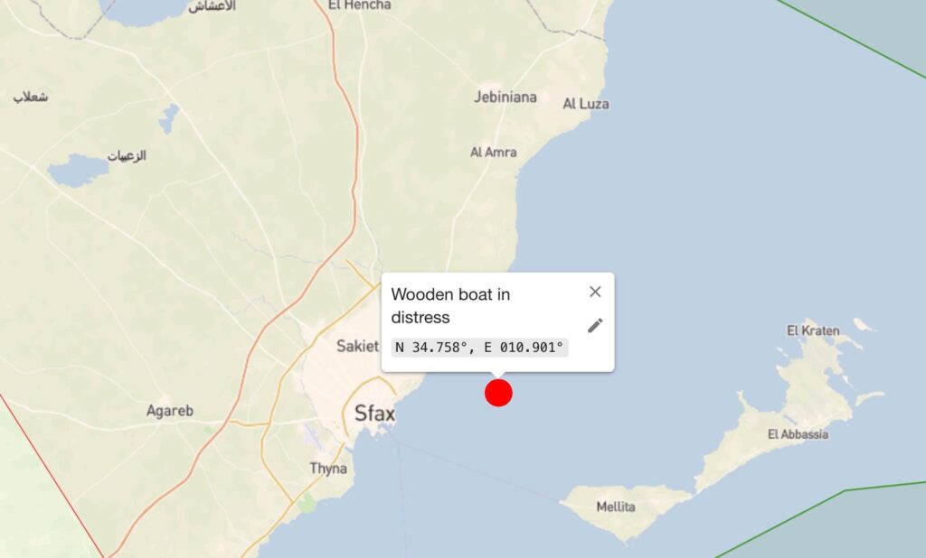 Map showing the position of the boat from Sfax. Source: Alarm Phone