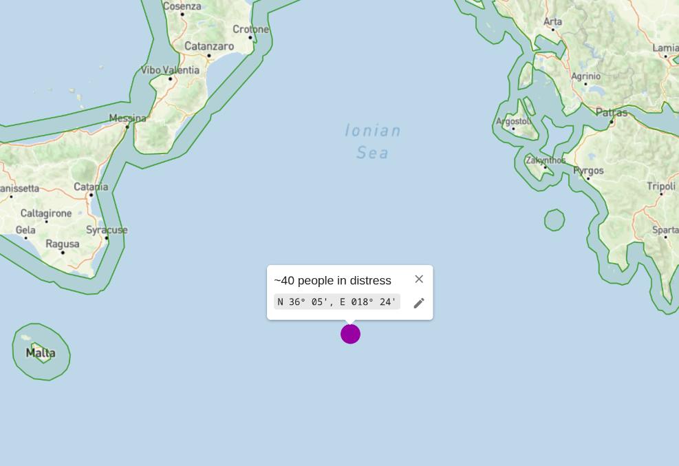 Position of the boat adrift in the Ionian Sea. Source: Alarm Phone