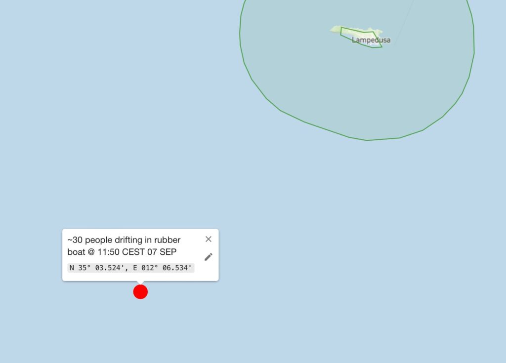 On the same day, Alarm Phone was alerted by about 30 people drifting 35 nautic miles southwest of Lampedusa in a rubber boat. We were relieved that they ended up being rescued by the Italian Coastguard and brought to Lampedusa.