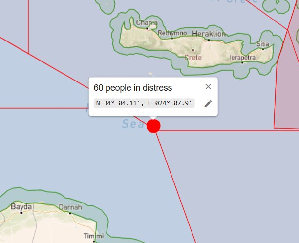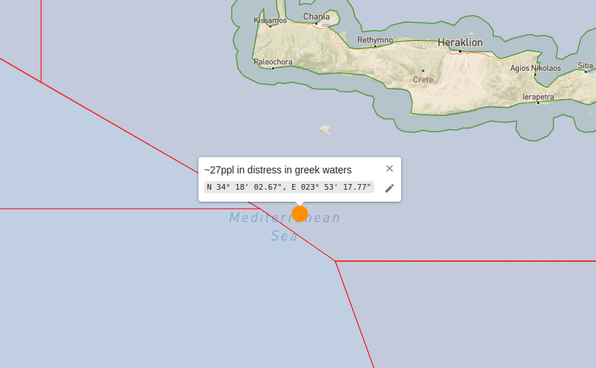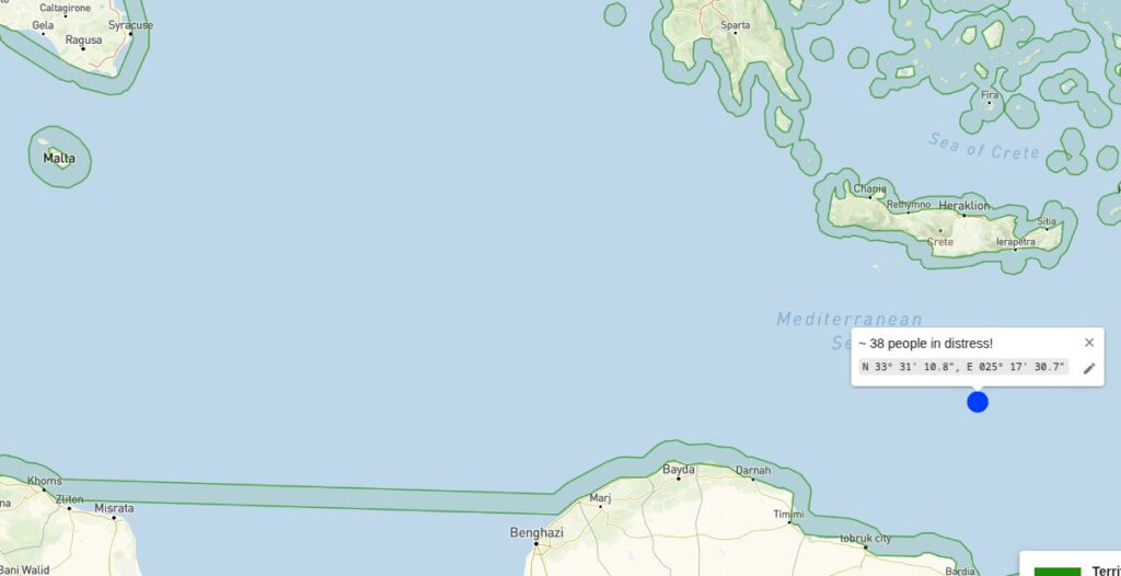 Position of the boat in distress off Crete. Source: Alarm Phone