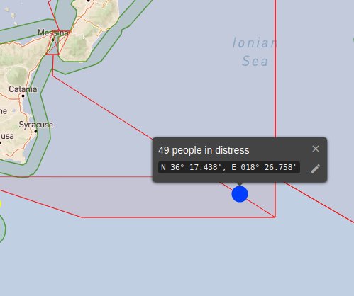 On the same day, Alarm Phone was in contact with 24 people on a boat adrift between Libya and Greece. They reported that they could see a big ship near them. We could observe that the merchant vessel MAERSK IZMIR had changed it’s course. On the next day, the Greek Coastguard confirmed that the group was rescued by this merchant vessel.