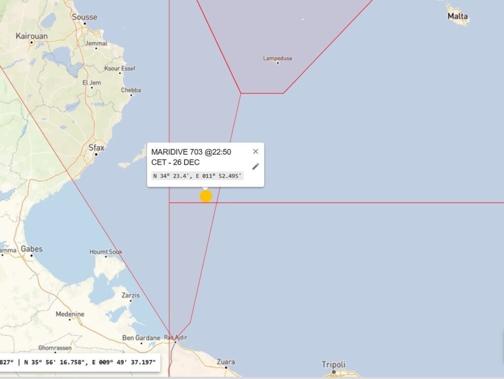 Position of the MARIDIVE 703 on 26 December. Source: Alarm Phone
