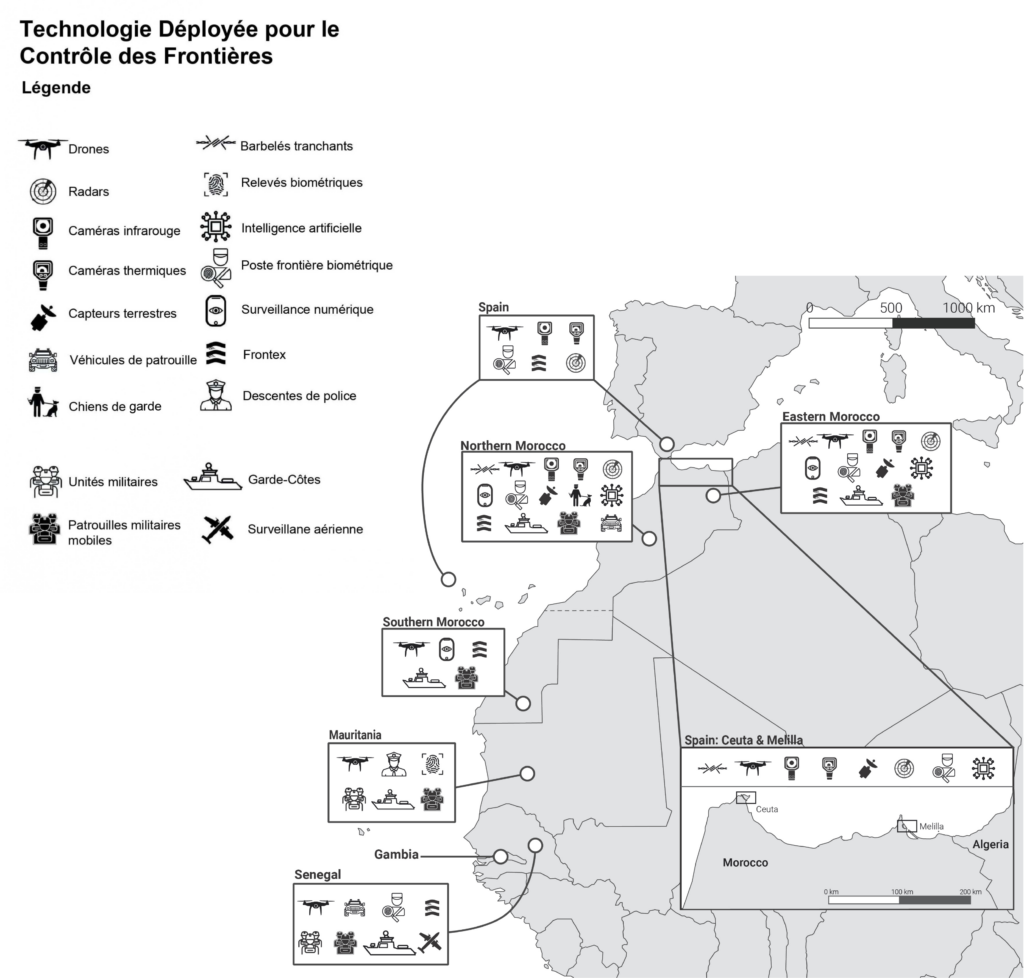 Dans ce rapport, nous montrons comment les frontières se font de plus en plus insécurisantes à cause des technologies de contrôle et de répression utilisées en Méditerranée occidentale et sur la route atlantique.